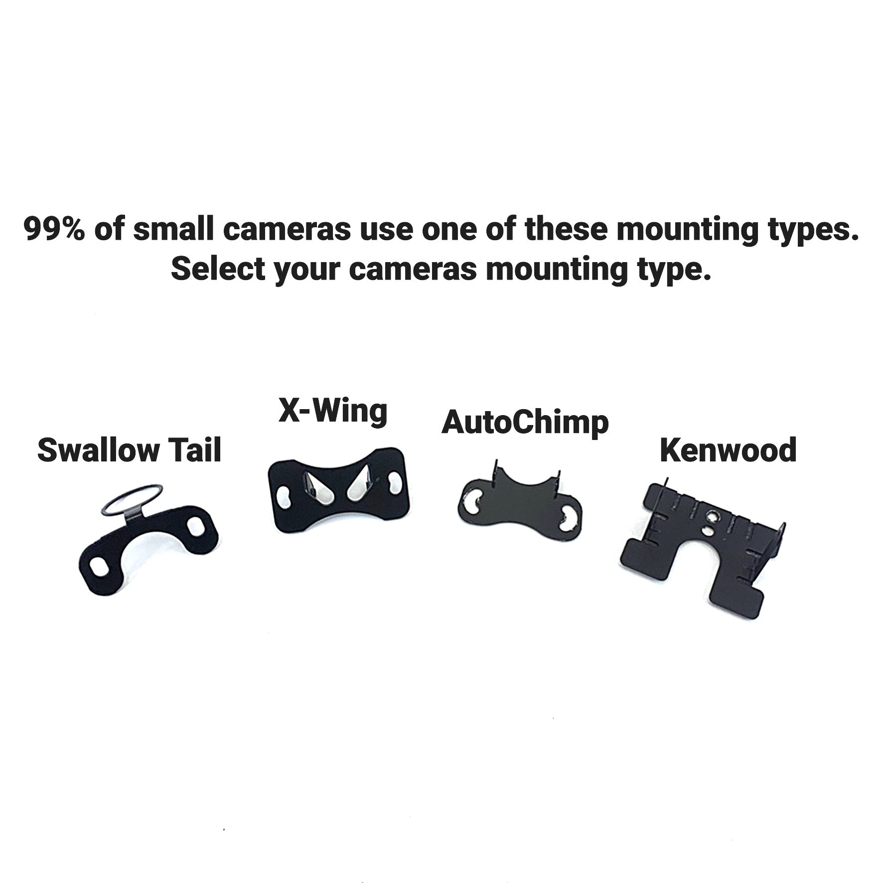 Designed for most popular light-vehicle rear-view/reverse camera mounting plates on the market. Select the mounting plate type for your camera.